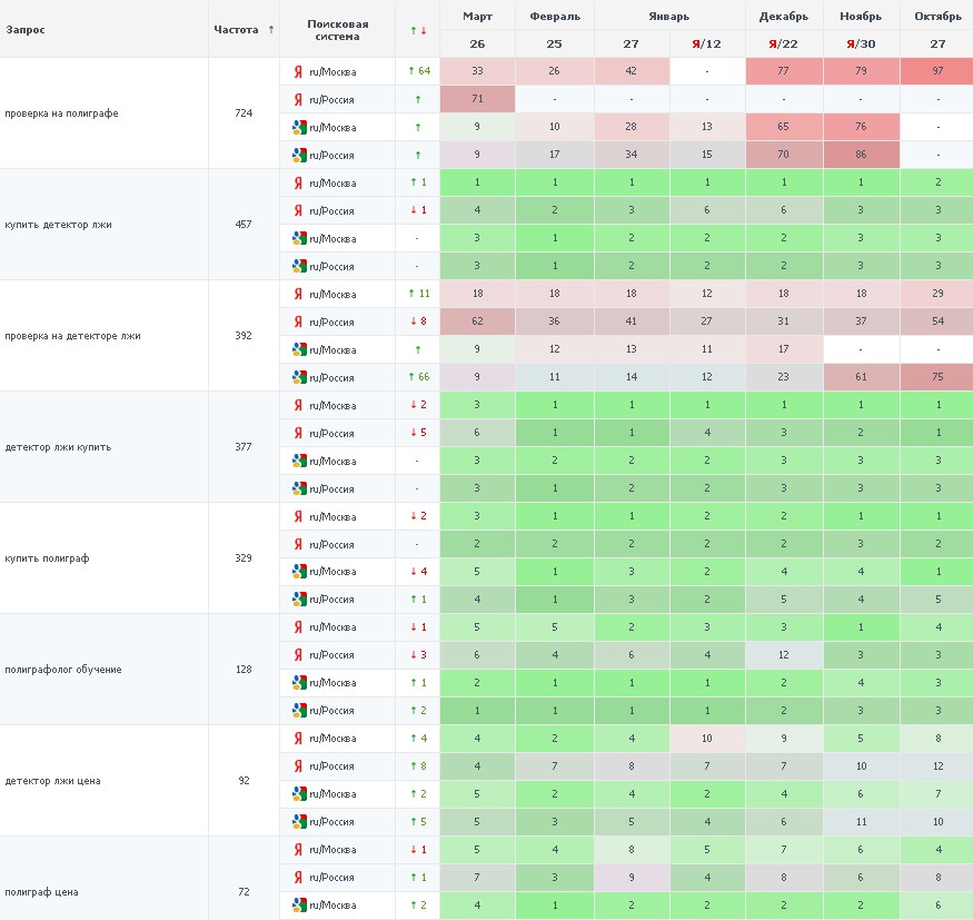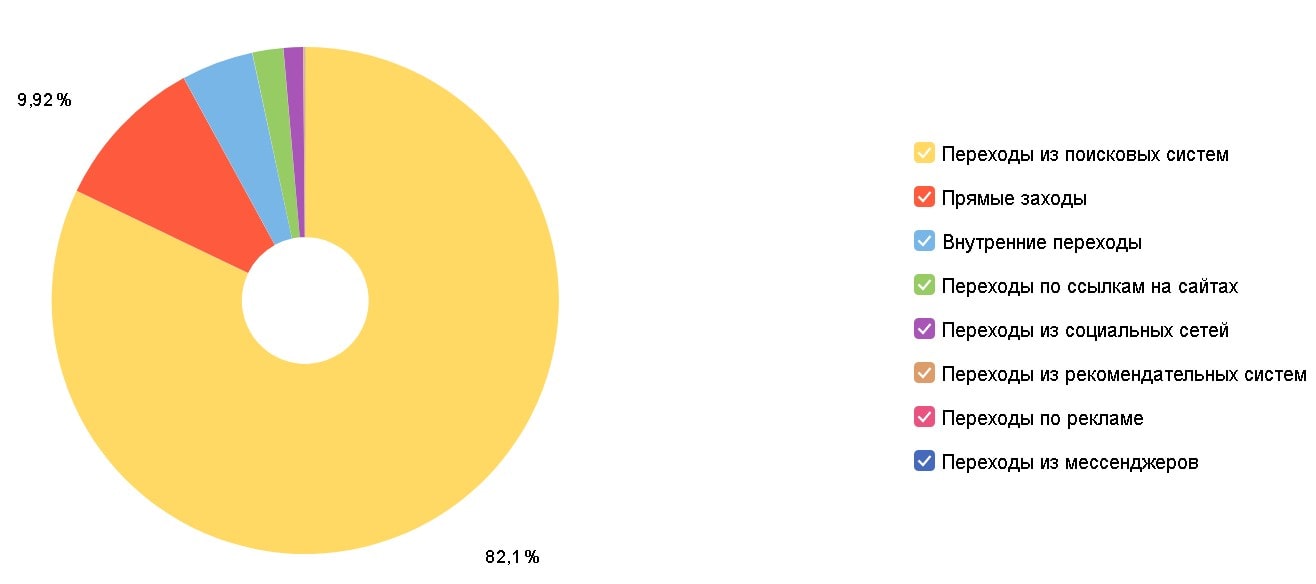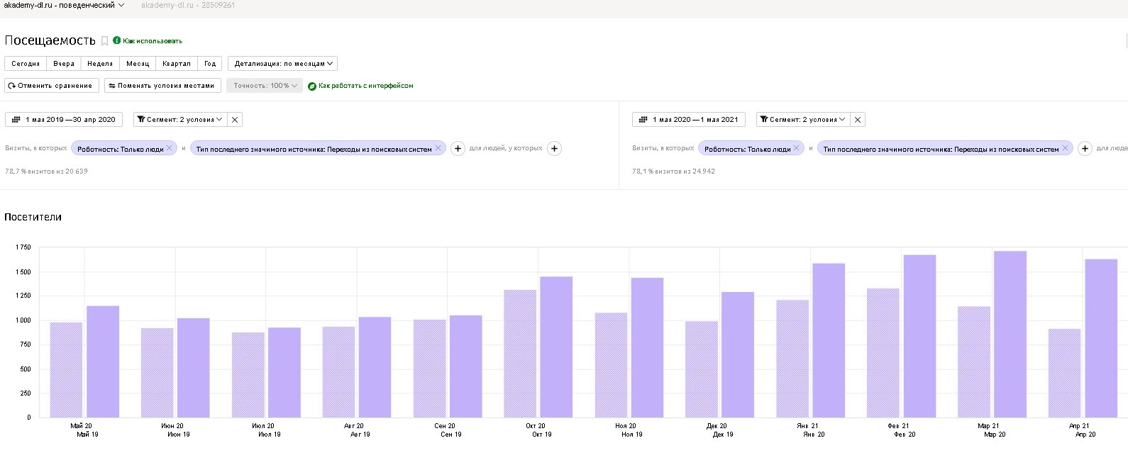 Посещаемость из поисковых систем по месяцам за анализируемый период