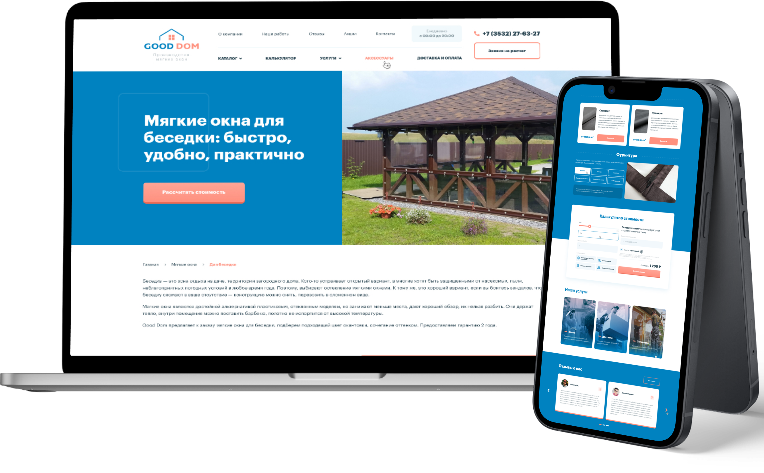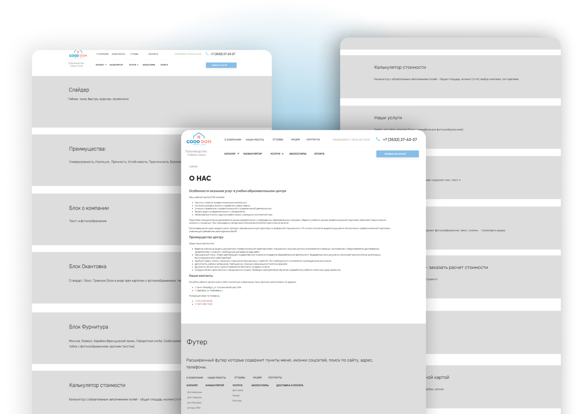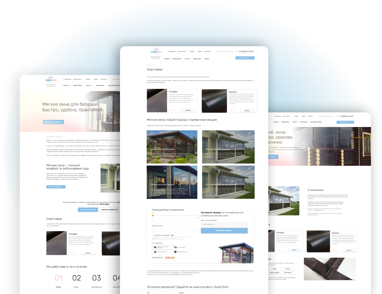 Чтобы сайт стал эффективным инструментом, привлекающим клиентов и помогающим увеличить продажи, над проектом «Мягкие окна «Good Dom» работала целая команда специалистов. Мы донесли до пользователей информацию о преимуществах компании, привлекли внимание к сильным сторонам продукта.