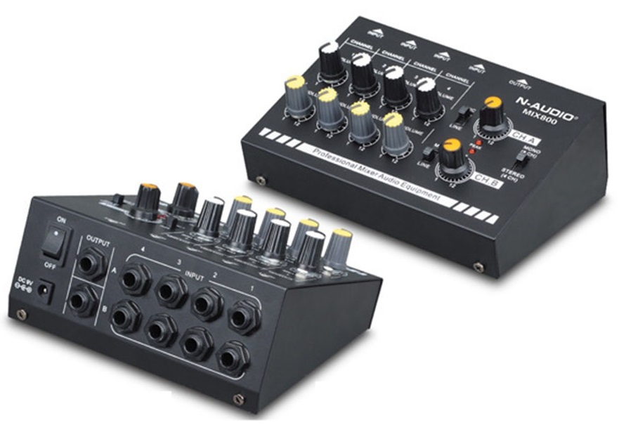 Когда конференции с клиентом проходят с несколькими нашими сотрудниками, мы предпочтительно используем одну камеру и несколько микрофонов. Это позволяет клиенту не переключать свое внимание на разных участников обсуждения. Объединить все микрофоны помогает микшер.