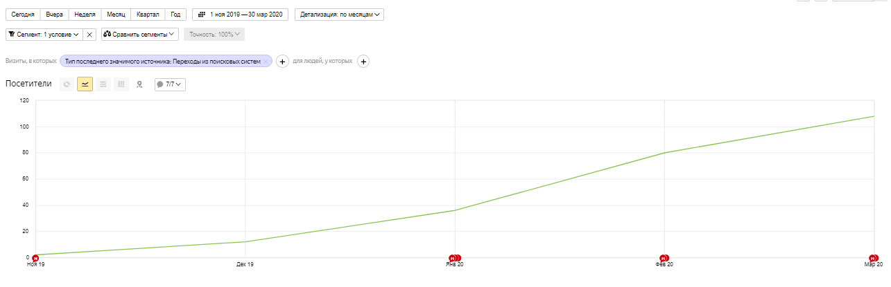 Количество посетителей увеличилось с 0 до 110 посетителей в месяц.