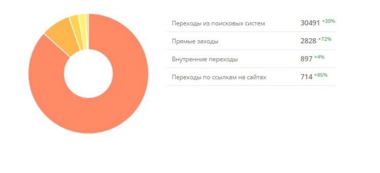 Если сравнивать период с марта-мая с периодом июня-августа 2021 года, можно заметить, что количество посетителей с поисковых систем увеличилось более чем на 30 процентов.