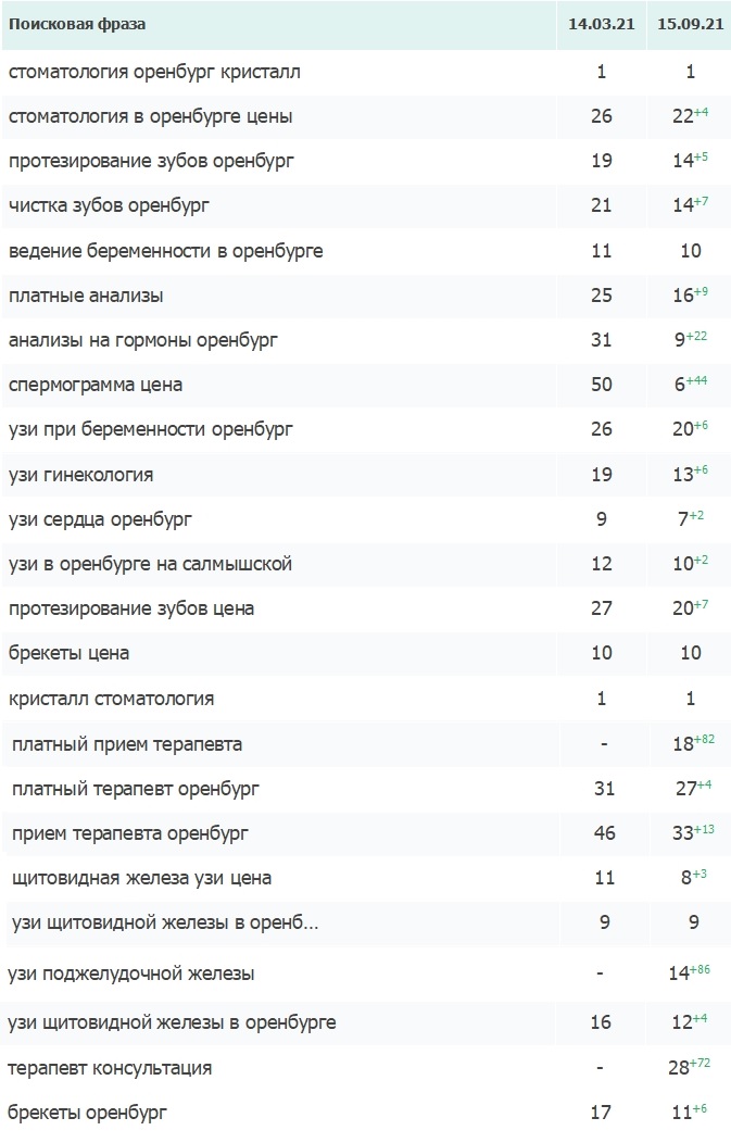 На данный момент сайт прочно закрепился в топе 10 по основным запросам. По-прежнему ведутся работы по внешней и внутренней оптимизации, а именно: