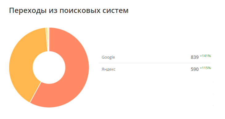 Рост показателей трафика в поисковых системах Яндекс и Google