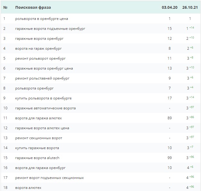 Примеры роста позиций ключевых запросов из основной выборки