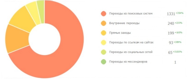 Ниже показаны переходы из различных источников: поисковых систем, из социальных сетей и других.