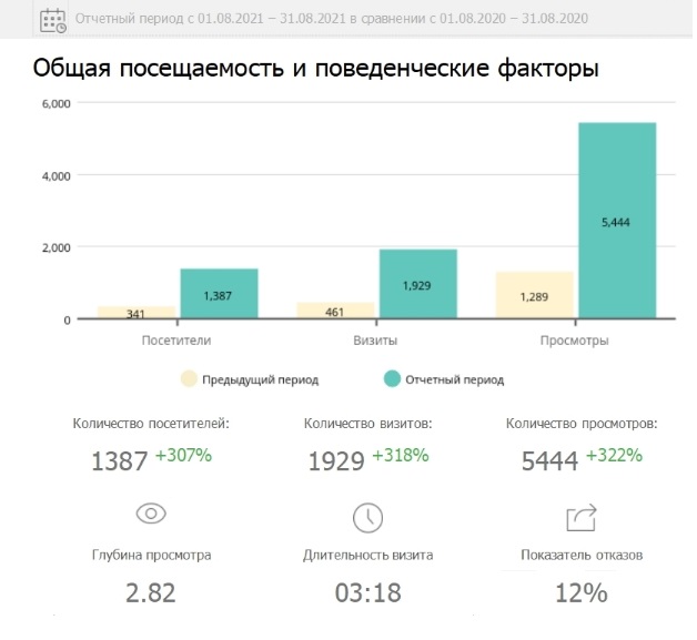 На графике ниже показаны периоды августа 2020 года и августа 2021 года. На нем можно заметить, что общее количество посетителей увеличилось более чем 4 раза.