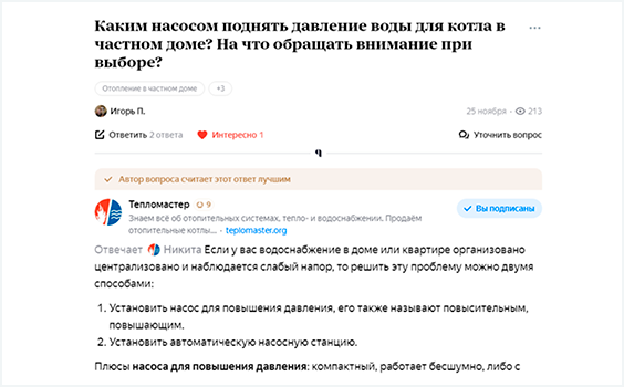 Отдельной задачей стоит эксперимент по развитию экспертного профиля компании на Яндекс.Кью и других сервисах. Работа с такими инструментами не только повышает количество упоминаний сайта и ссылок на него, но и создает положительную репутацию бренду в интернете, так же как точки продаж поддерживают её оффлайн.