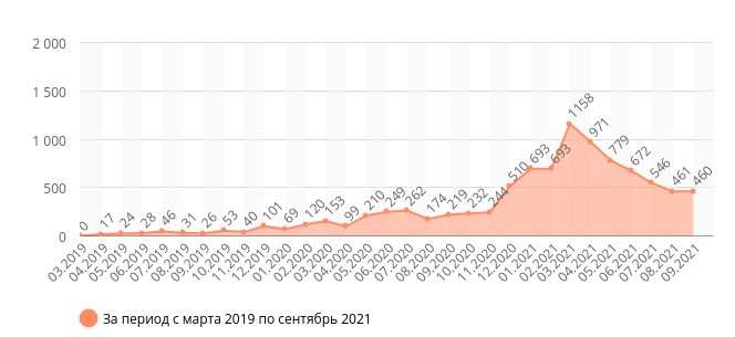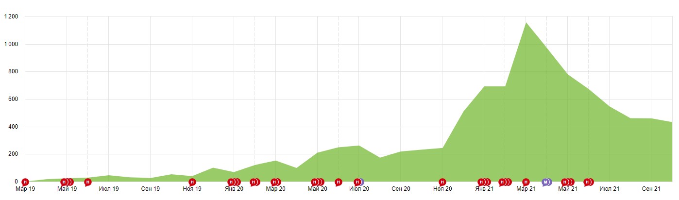 Динамика поискового трафика по месяцам с марта 2019 года по сентябрь 2021
