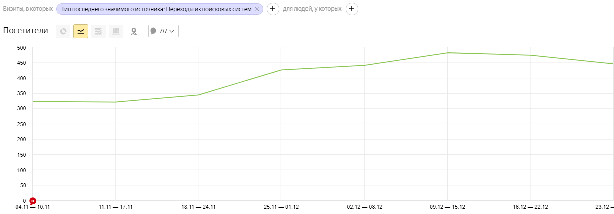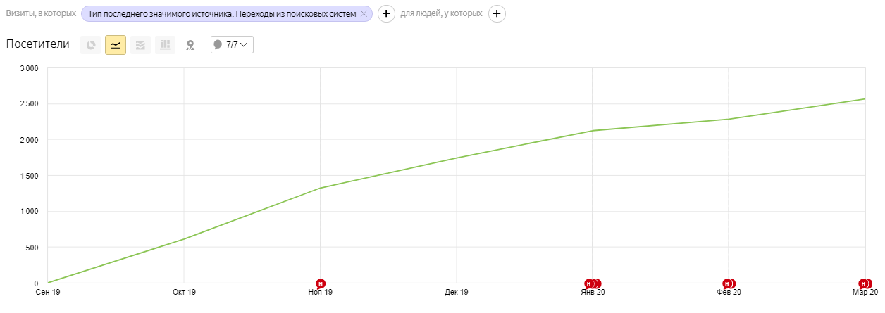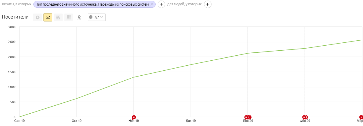 Количество посетителей увеличилось с 0 до 2500 посетителей в месяц.