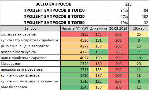 После снятия фильтра большинство запросов сразу же вошло в топ-10.