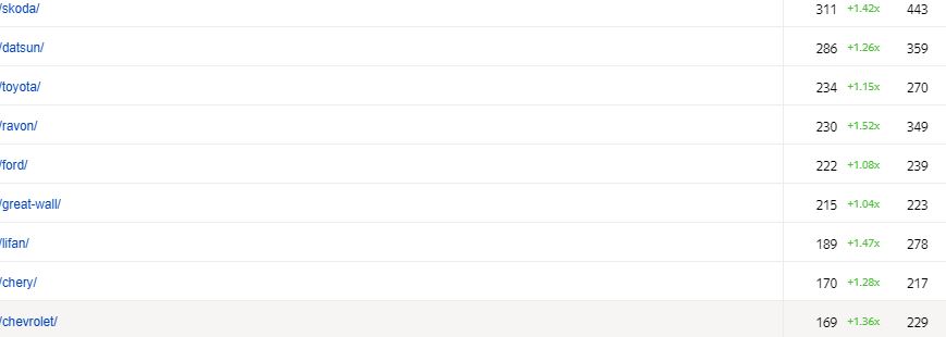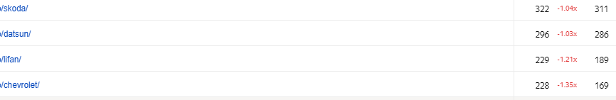 В автосалоне приличное количество посадочных страниц, поэтому было решено сделать акцент на страницы разделов и наиболее популярных моделей автомобилей. Собрали начальную семантику на 200 запросов. На ее основе начали проработку. Постоянное расширение семантического ядра и отслеживание наиболее приоритетных запросов. Подготовлены новые шаблоны мета-тегов на категории и карточки товаров.